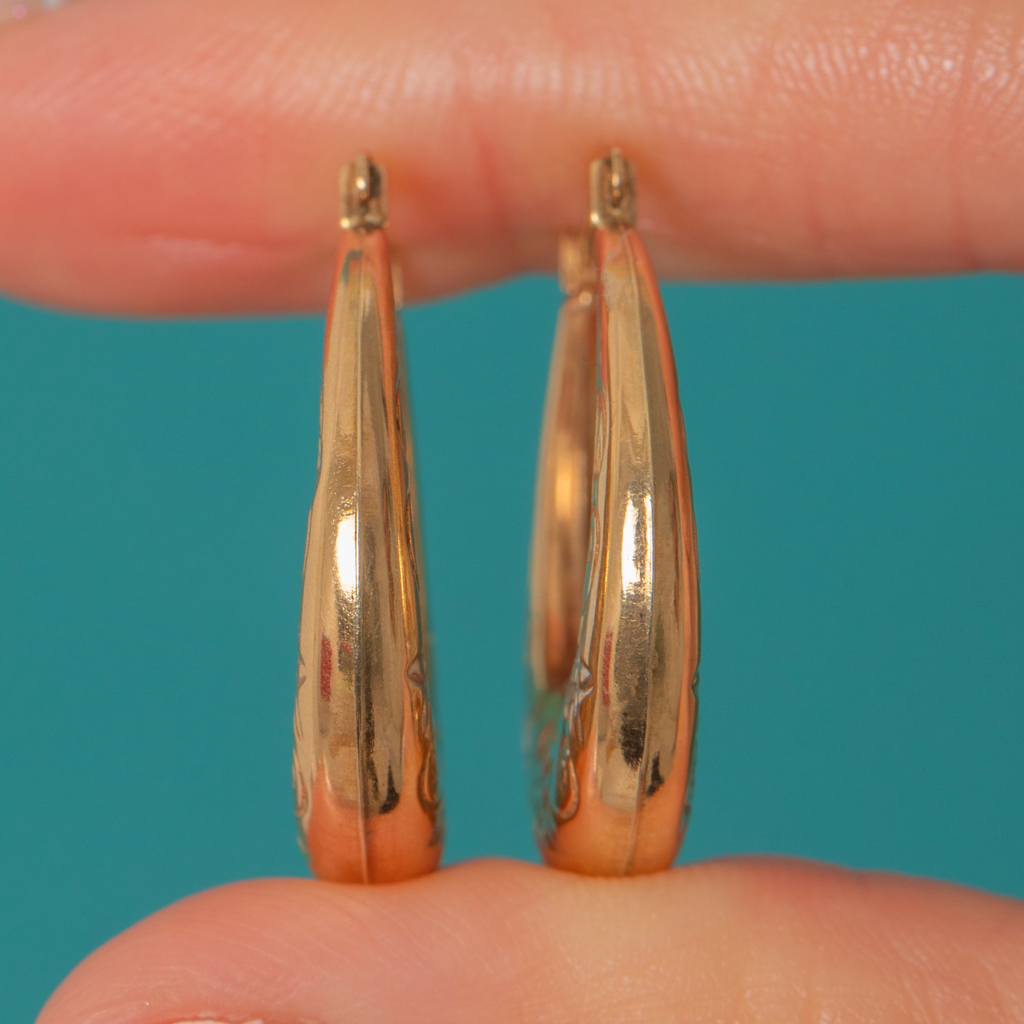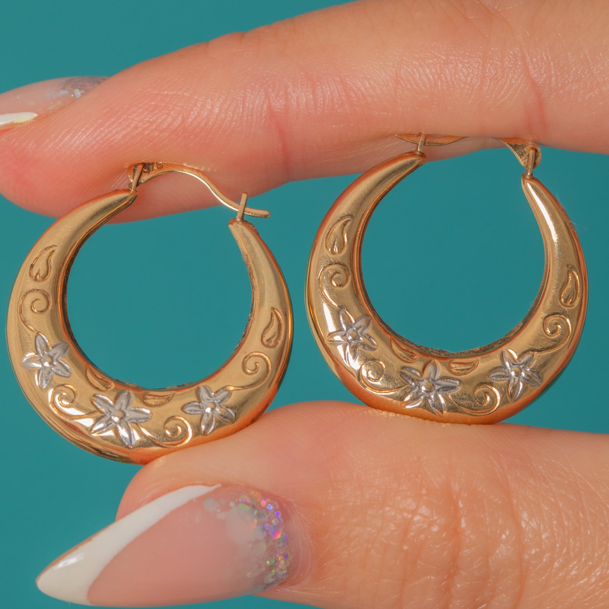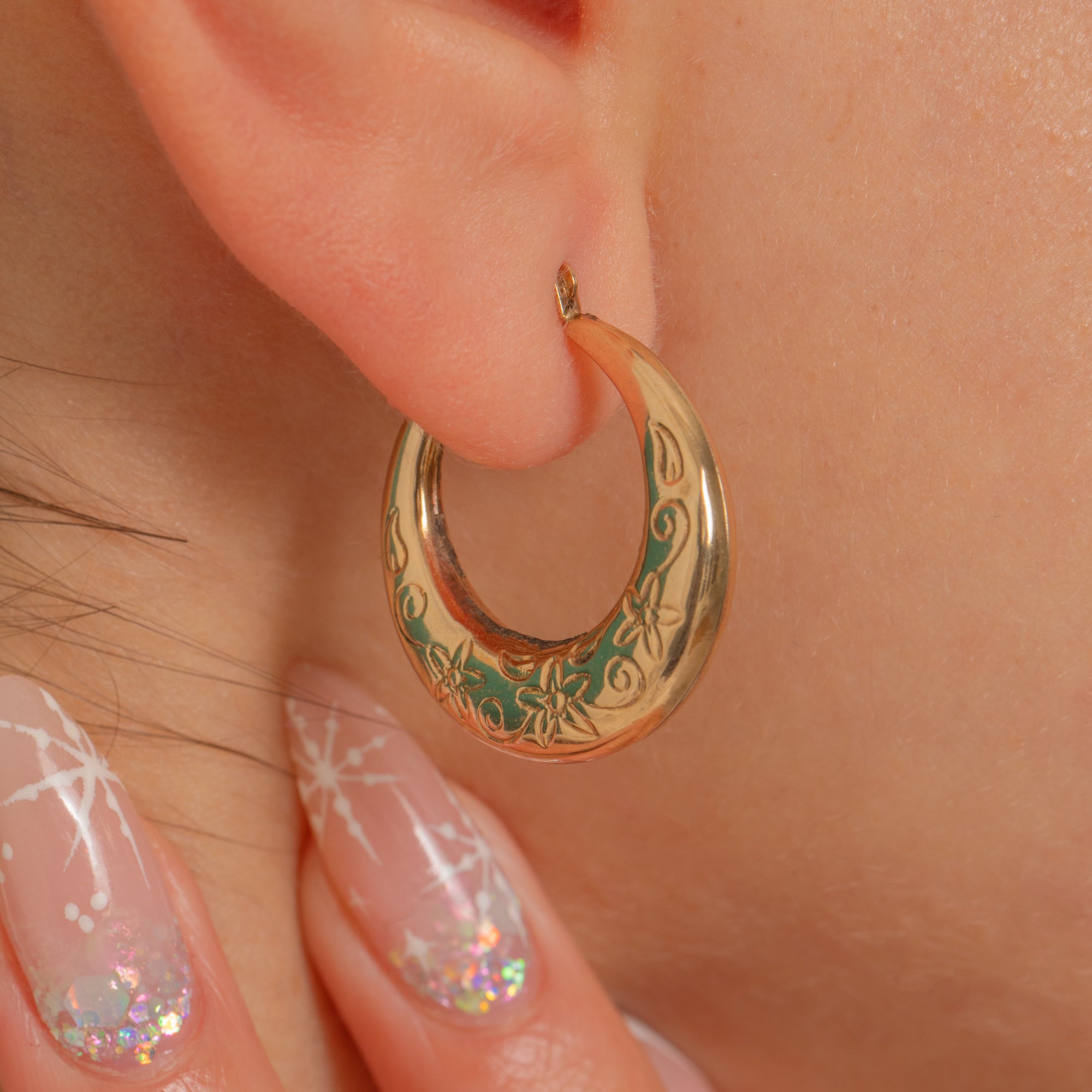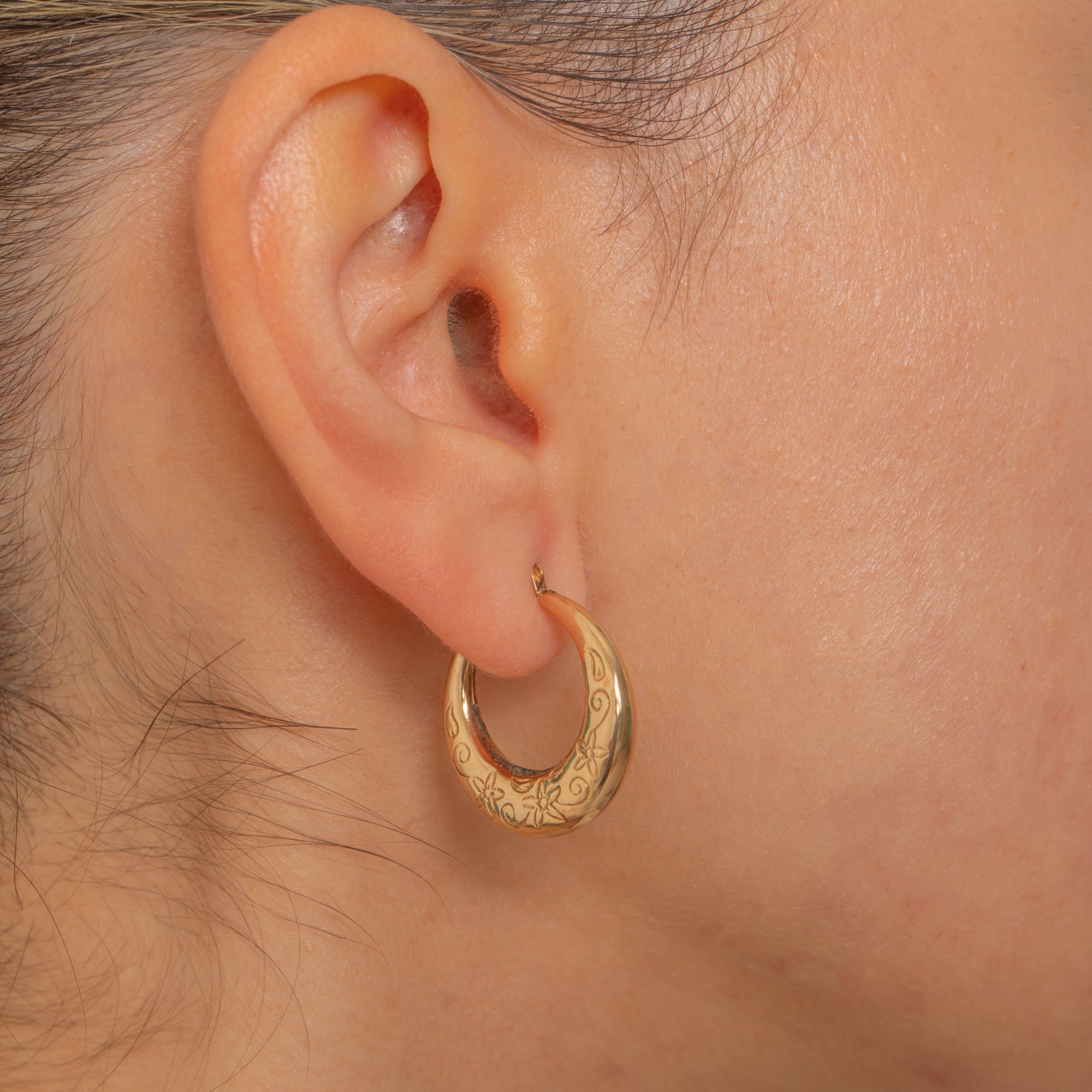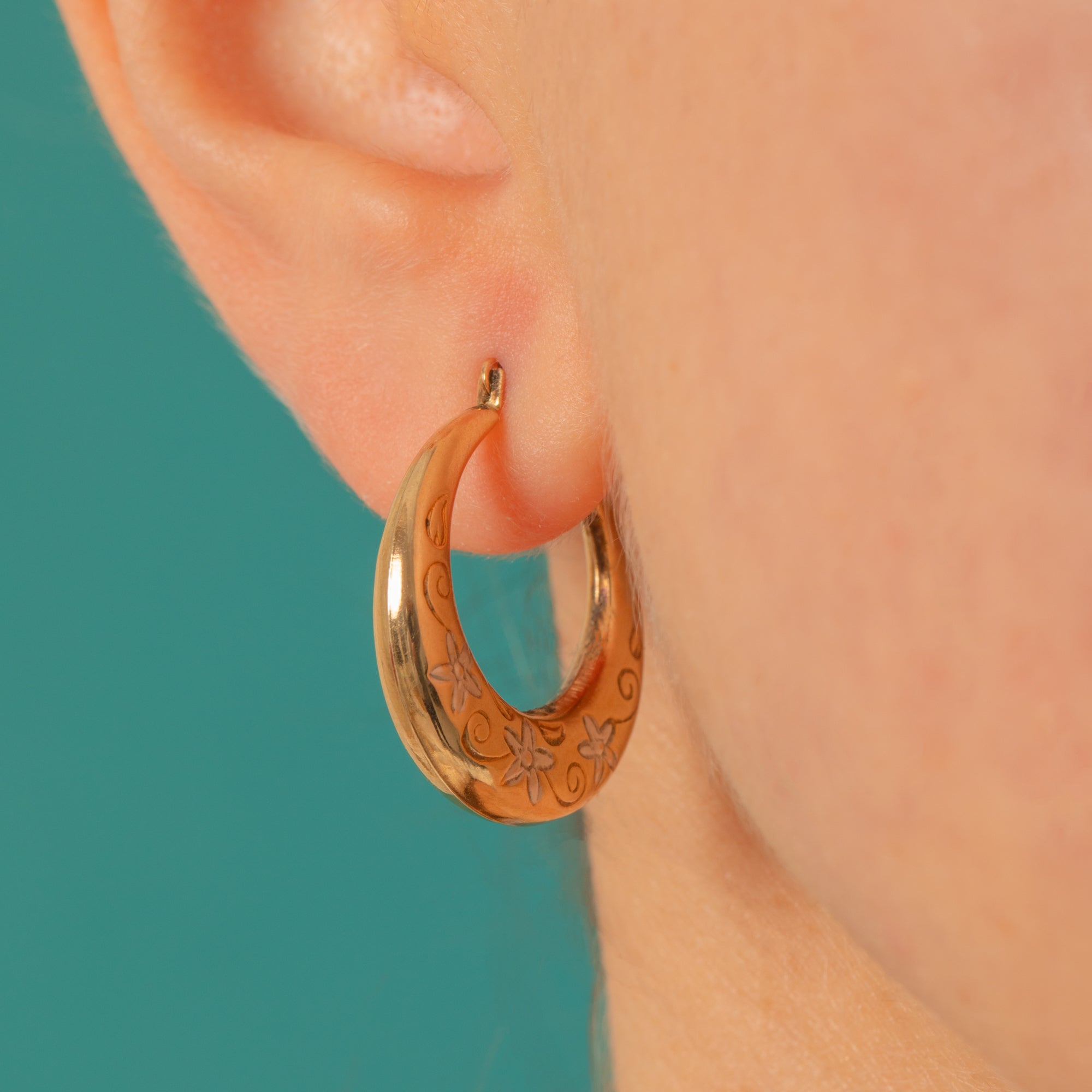 ヴィンテージ 9ct ゴールド フラワーディテール フープピアス