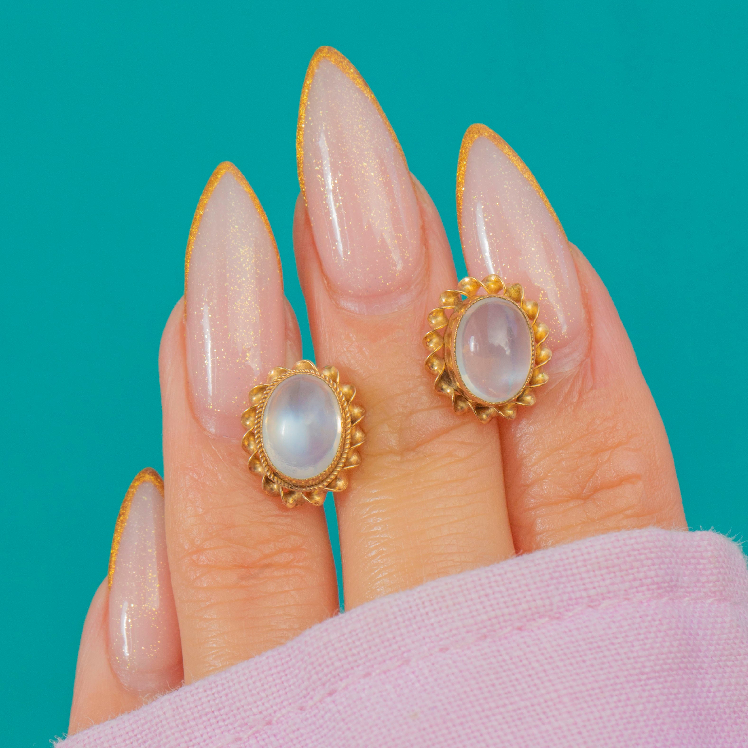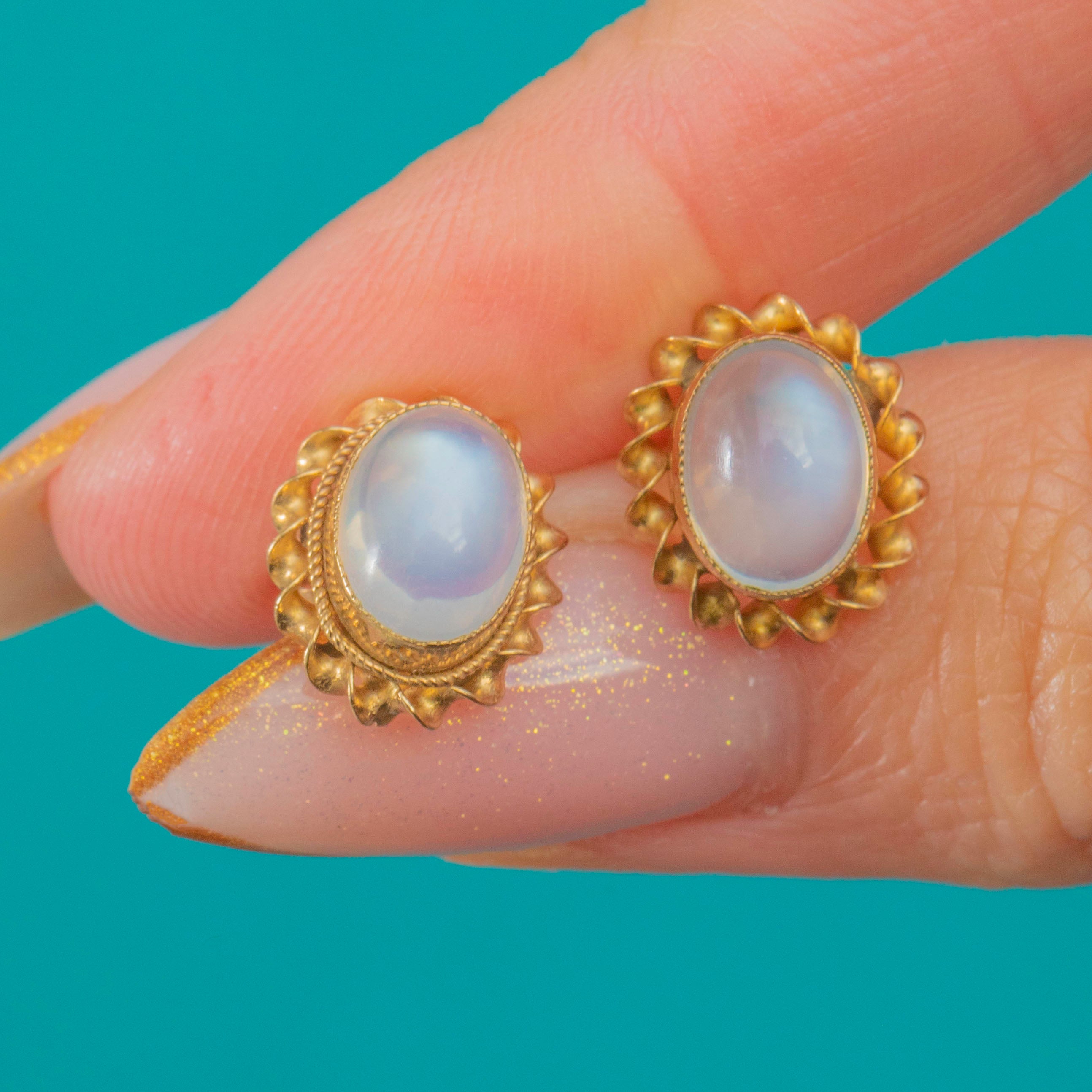 ヴィンテージ 9ct ゴールド ムーンストーン カボション スタッズ