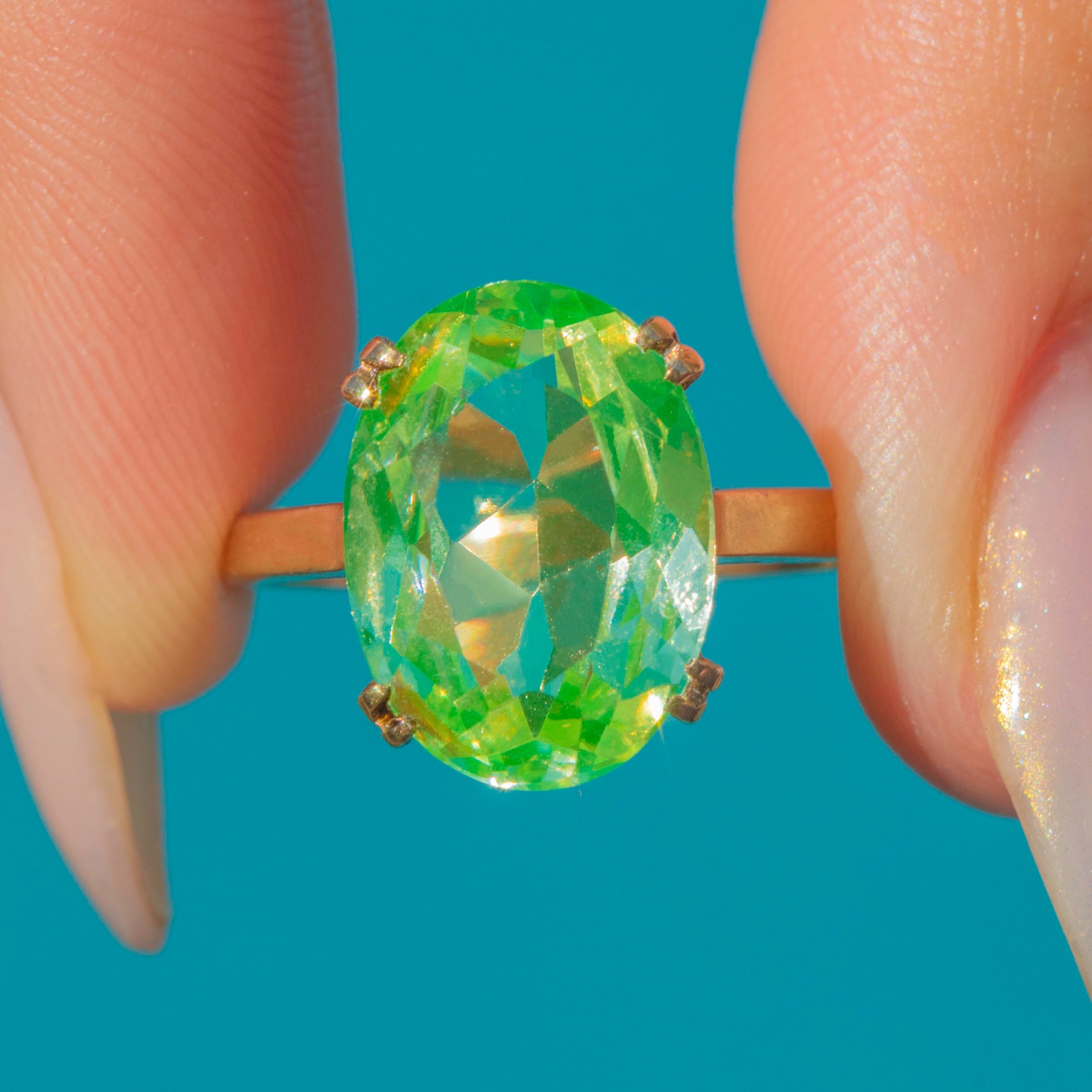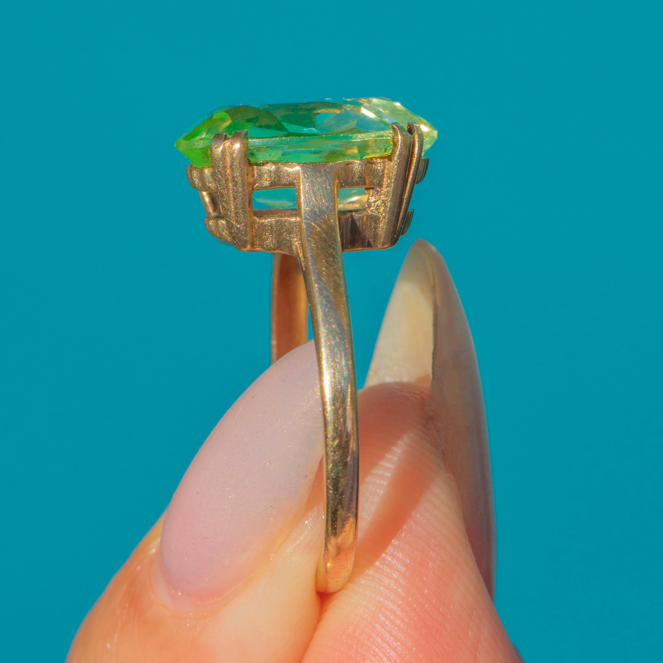 Vintage 9ct Gold Neon Green Synthetic Spinel Ring c.1990