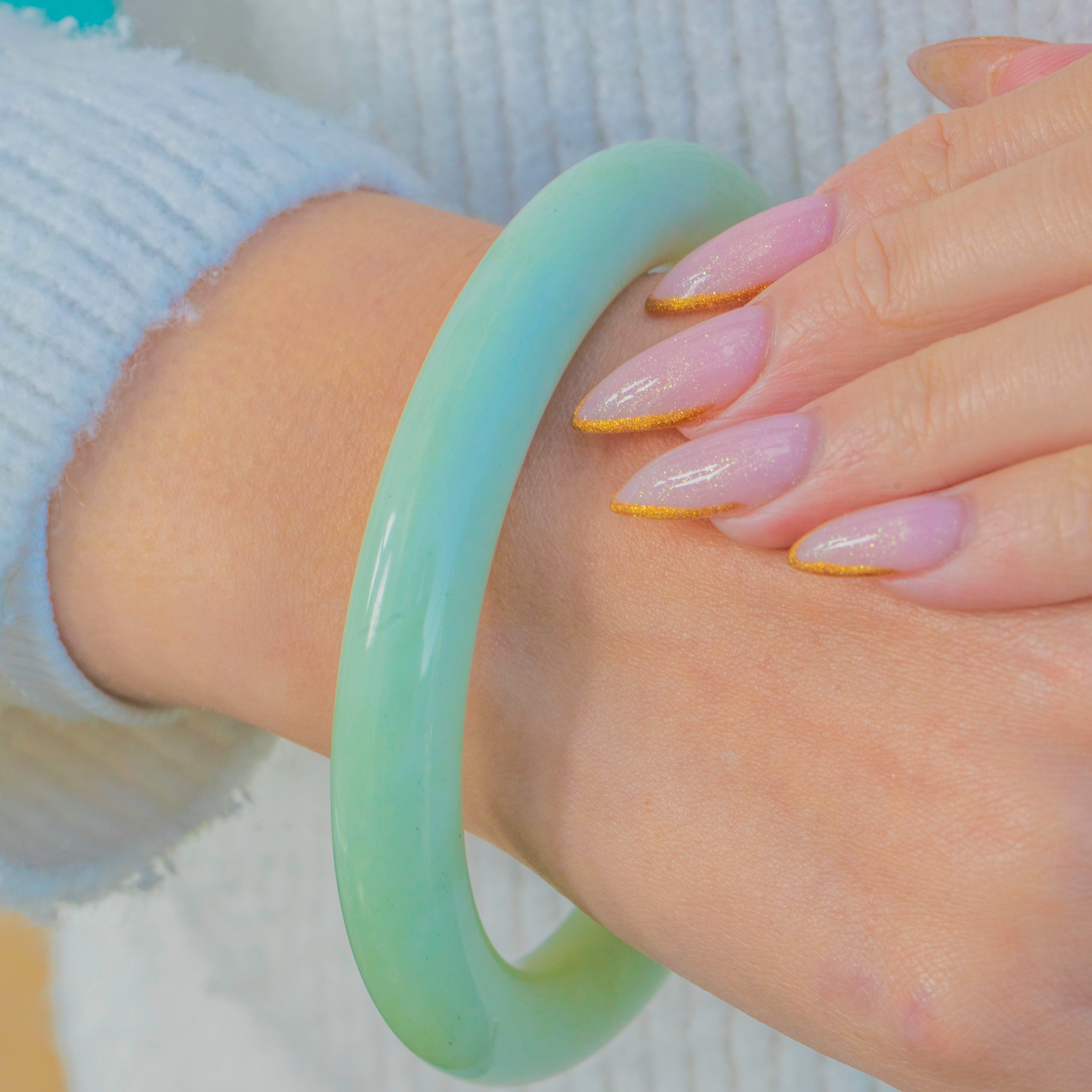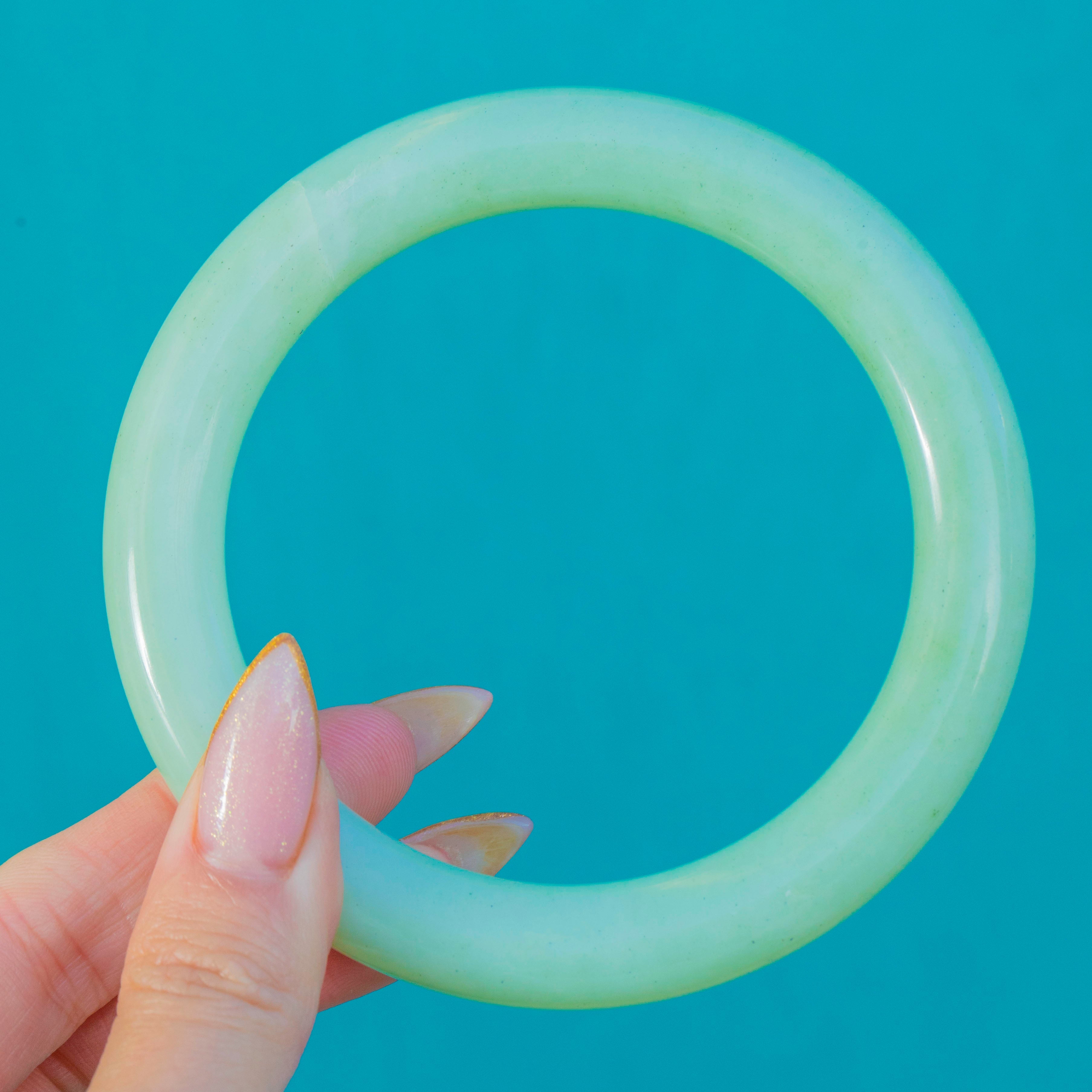 翡翠のバングルは長い間、保護、調和、幸運のために身に着けられてきました。この作品は時代を超えたシンプルさを持ち、現代のジュエリーとアンティークジュエリーの両方に自然に調和します。