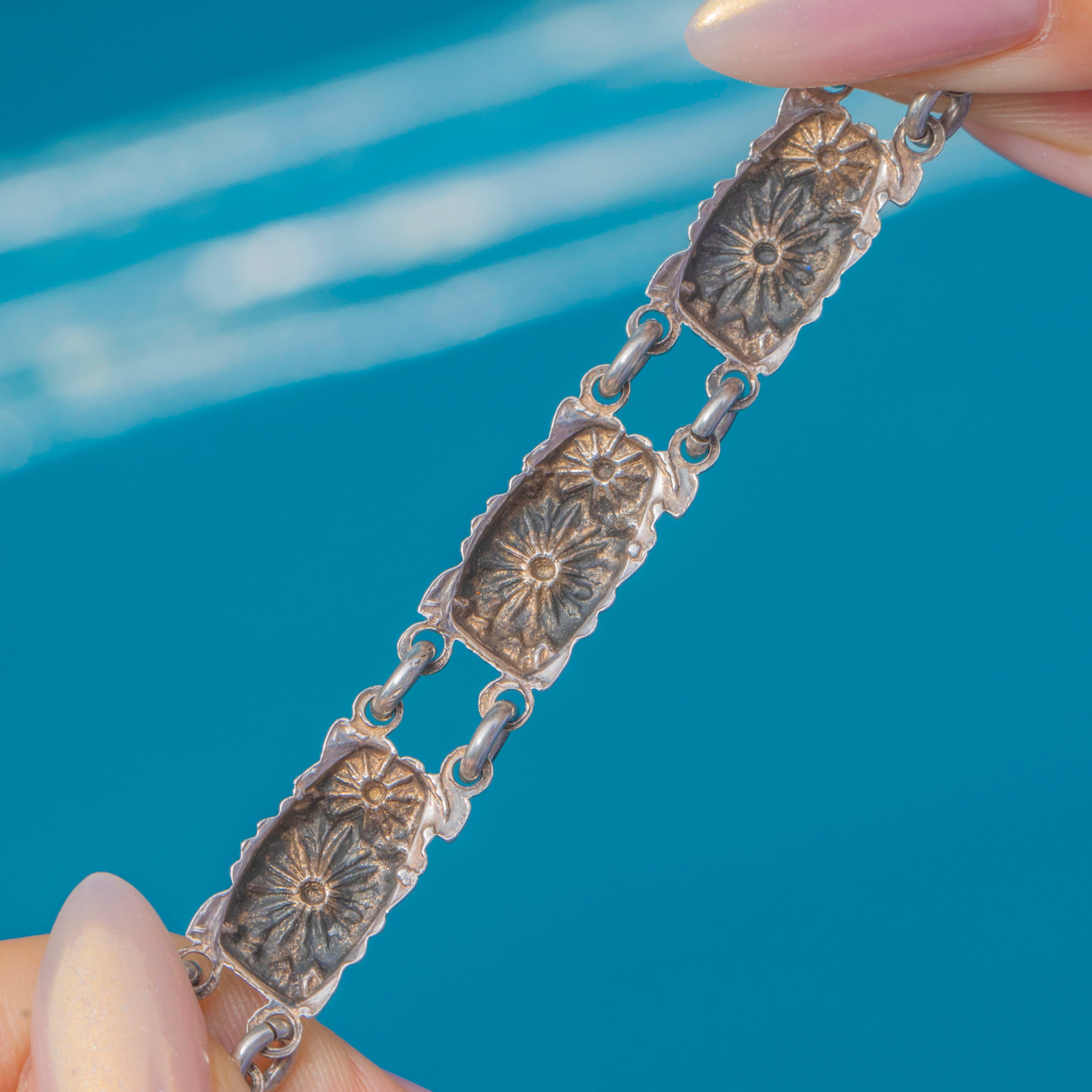 EXCELLENT This bracelet is presented in excellent condition. The Silver has developed a light, attractive patina, while the Enamel remains in perfect condition without chips or wear. The links and clasp are secure, and the bracelet has been very well preserved.