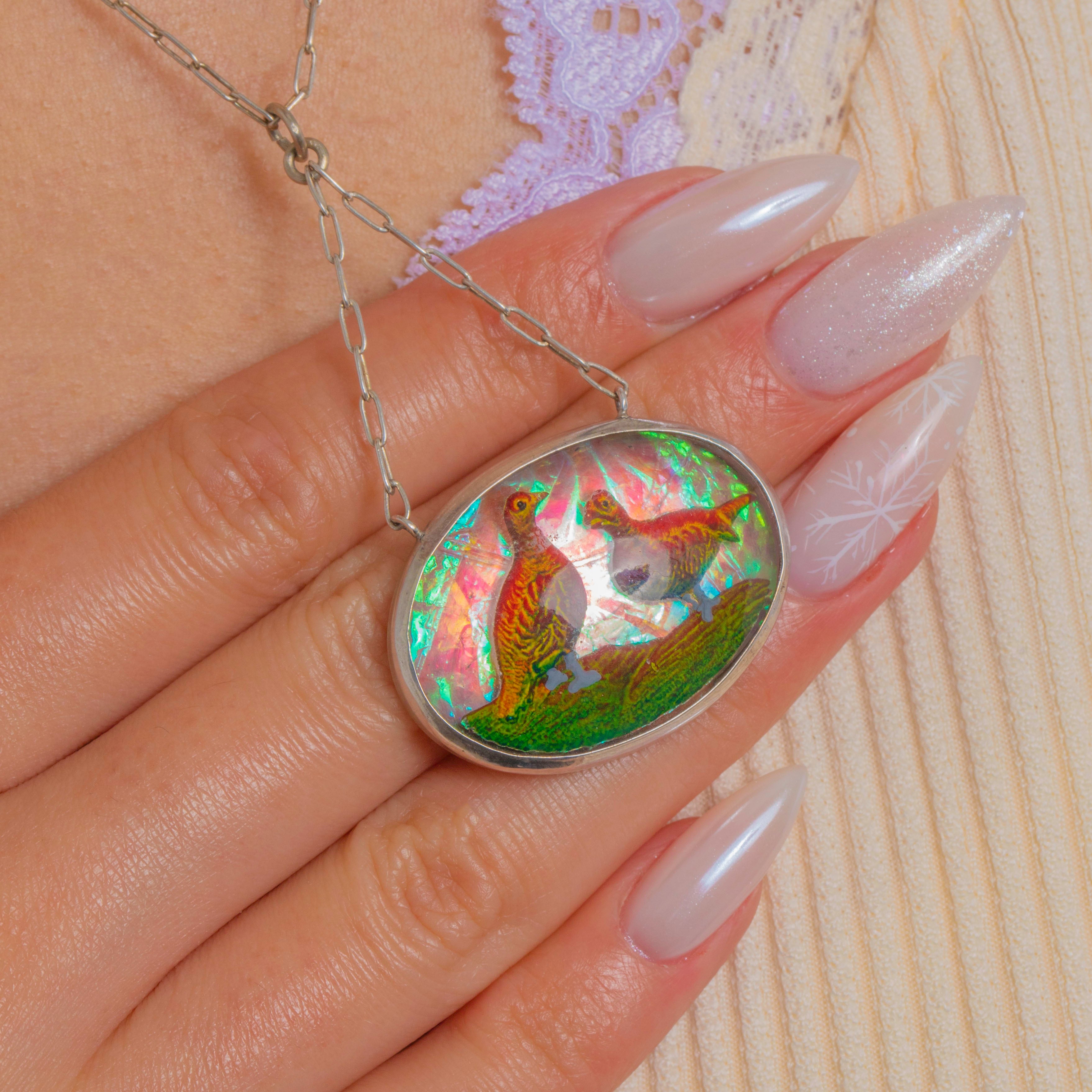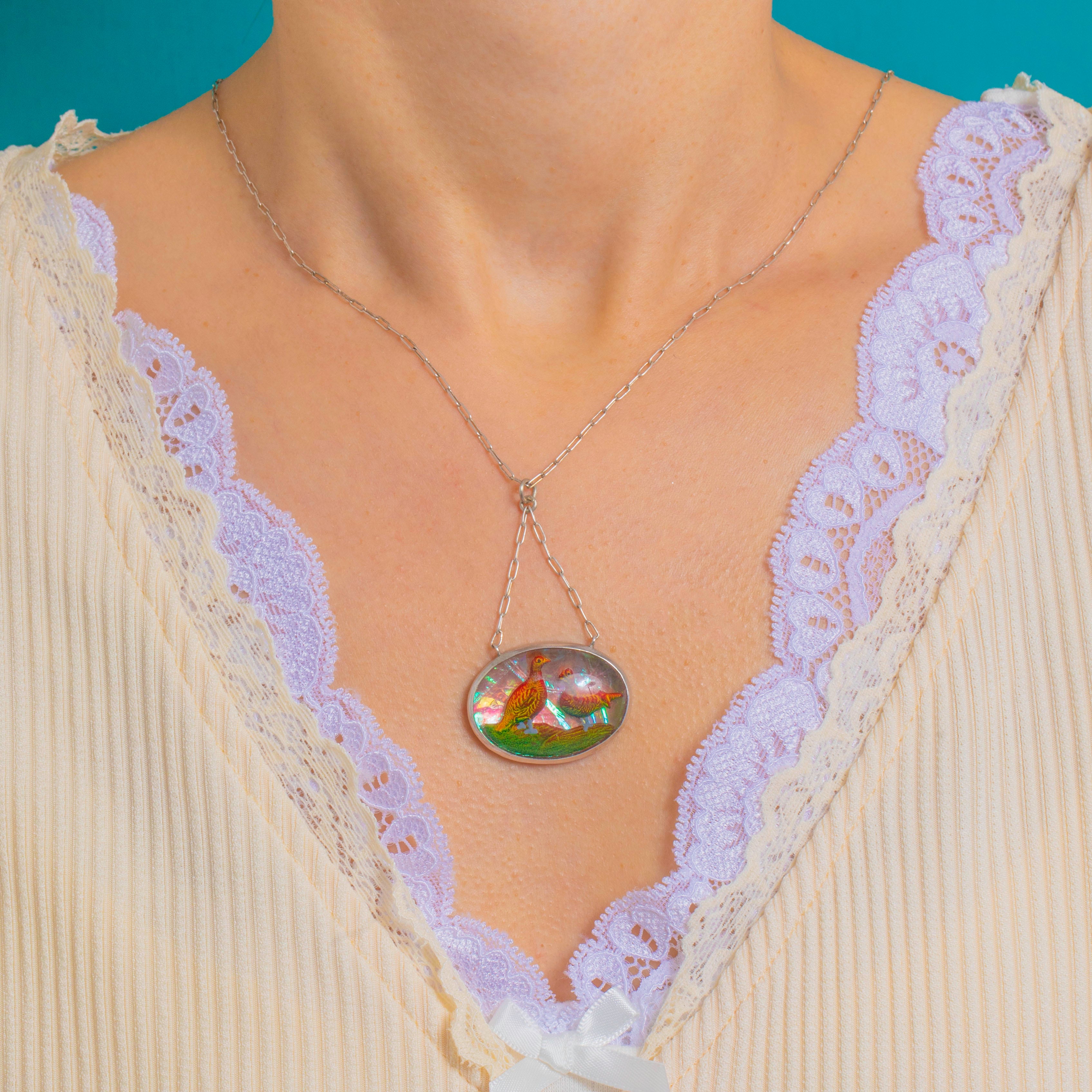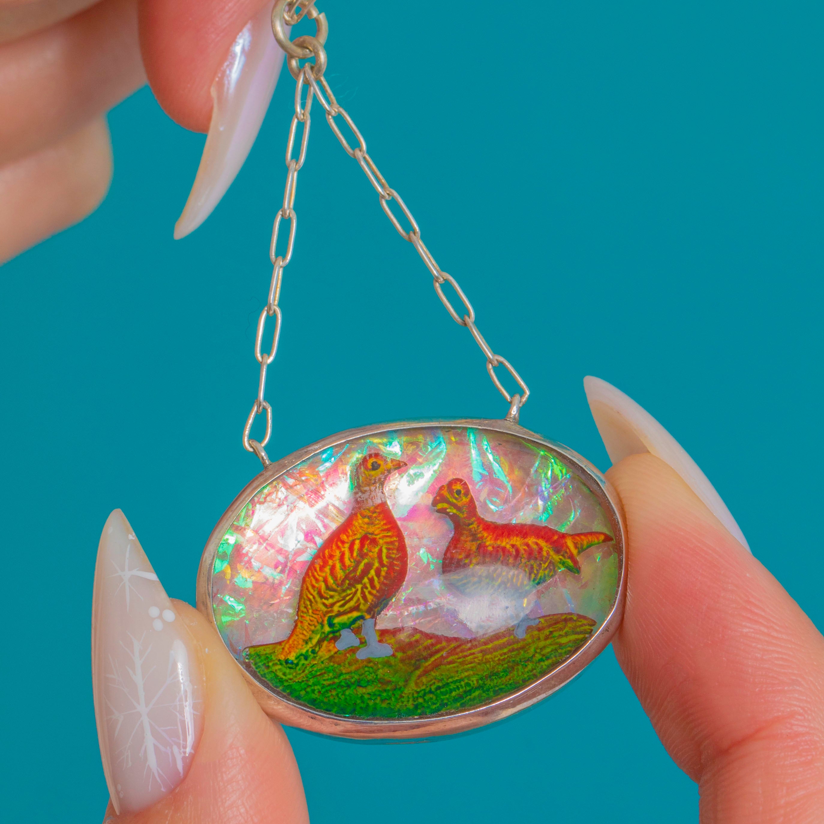 ヴィンテージ シルバー リバースペイント キジの親子 ペンダントネックレス