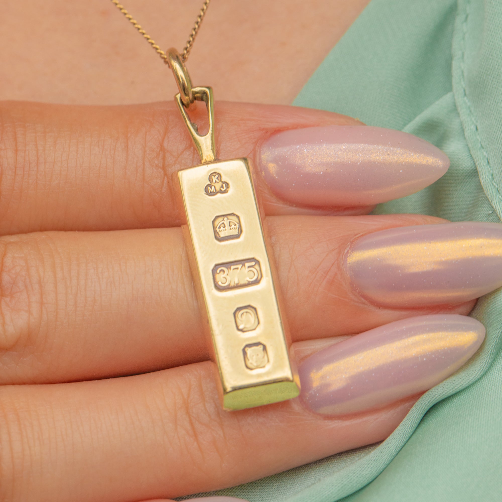 Vintage Solid 9ct Gold Ingot Pendant with 1978 Hallmarks