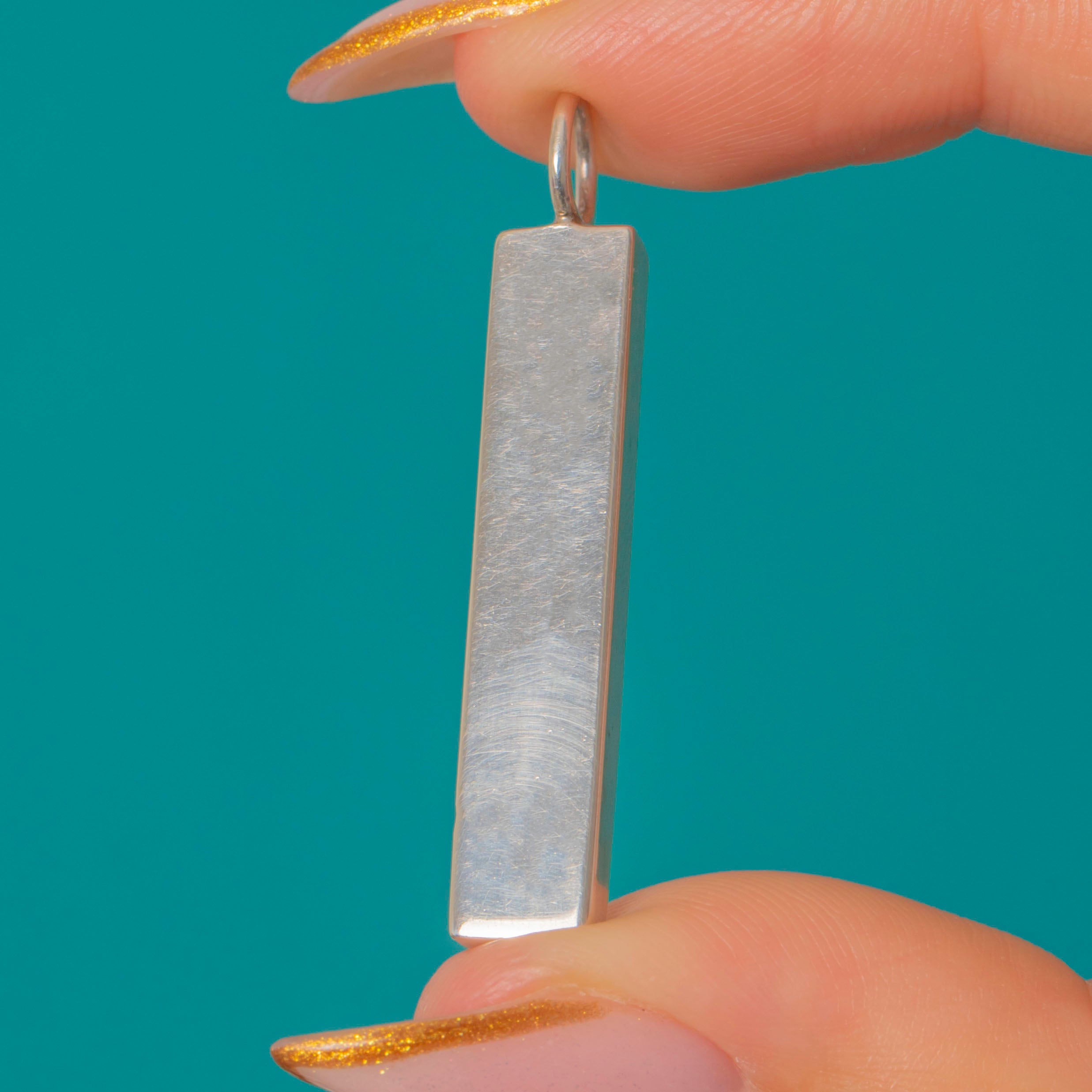 This handsome Vintage Silver ingot pendant is a timeless classic — simple, solid, and satisfyingly weighty. Crafted in Sterling Silver, its sleek rectangular form showcases a full set of crisp Birmingham hallmarks for 1980.