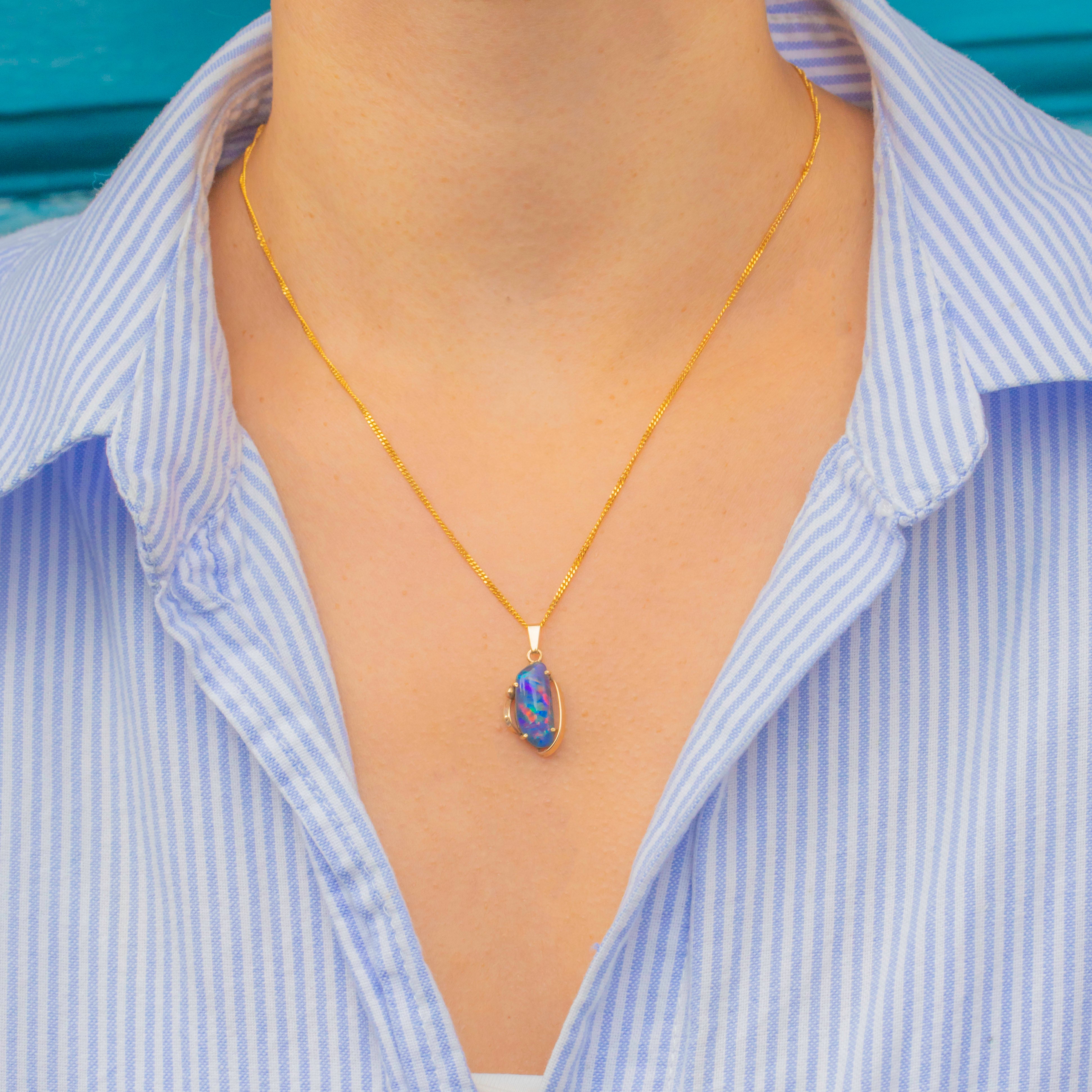 Vivid 9ct Gold Opal Triplet Pendant & 18" Solid Gold Chain