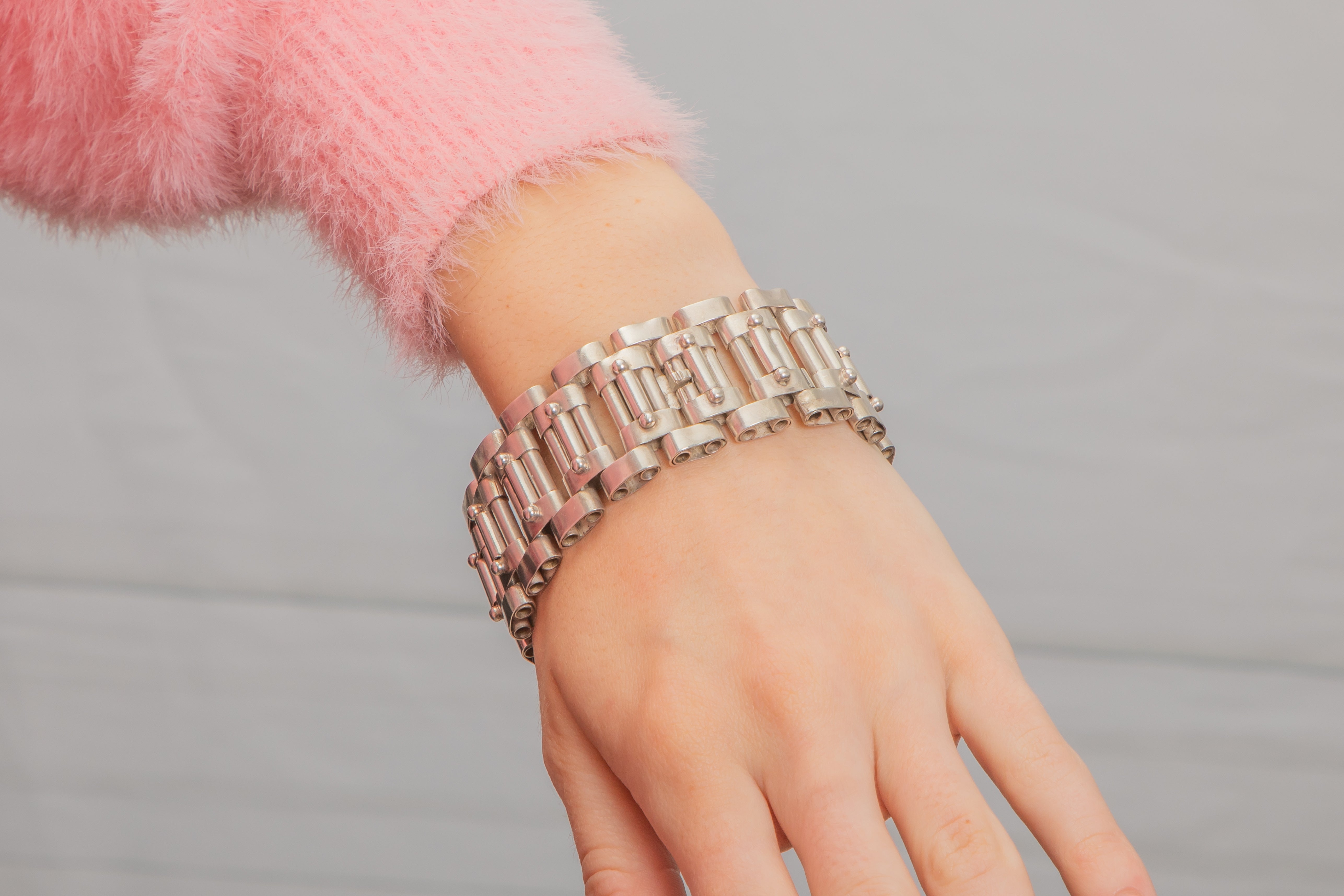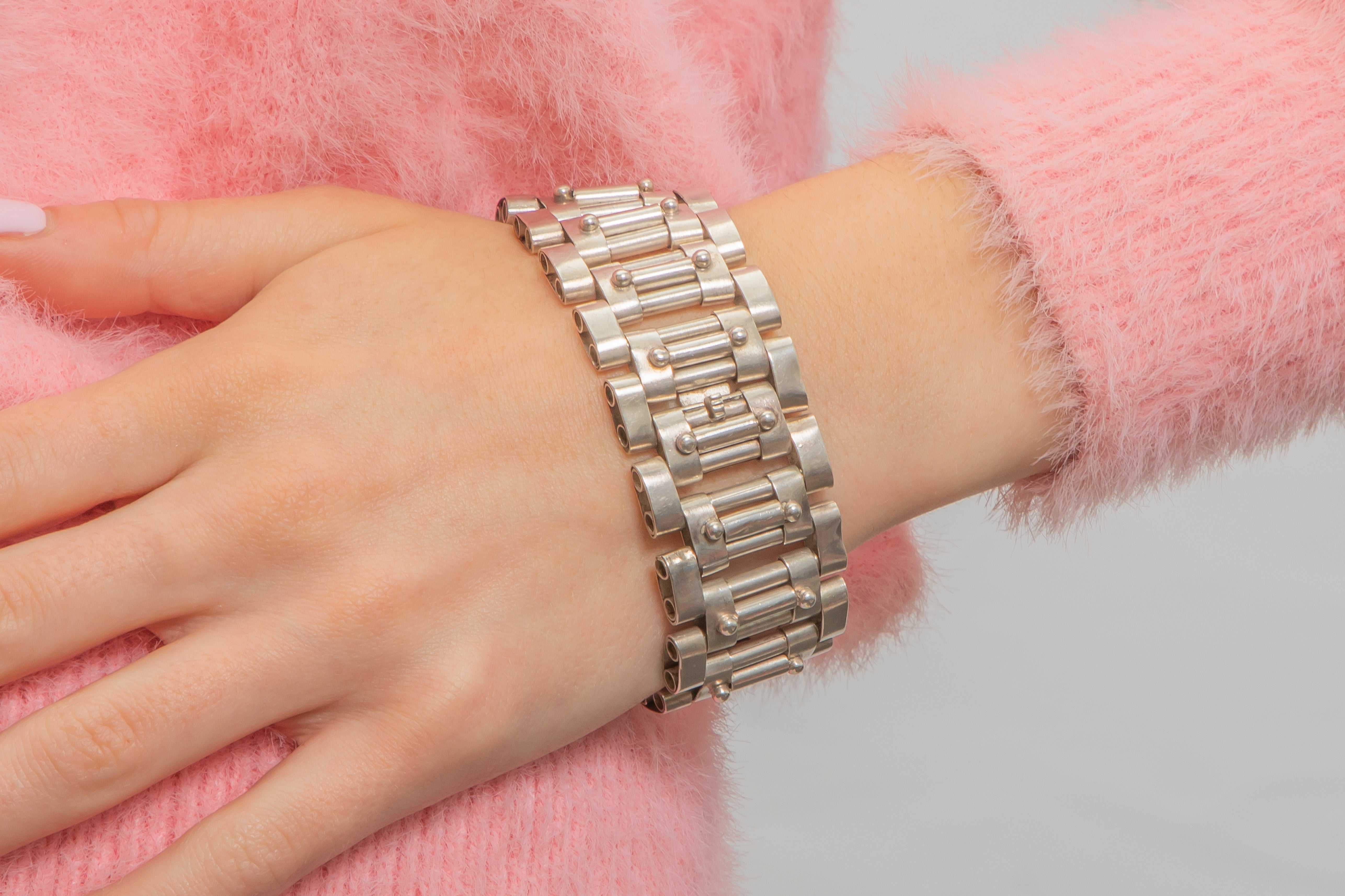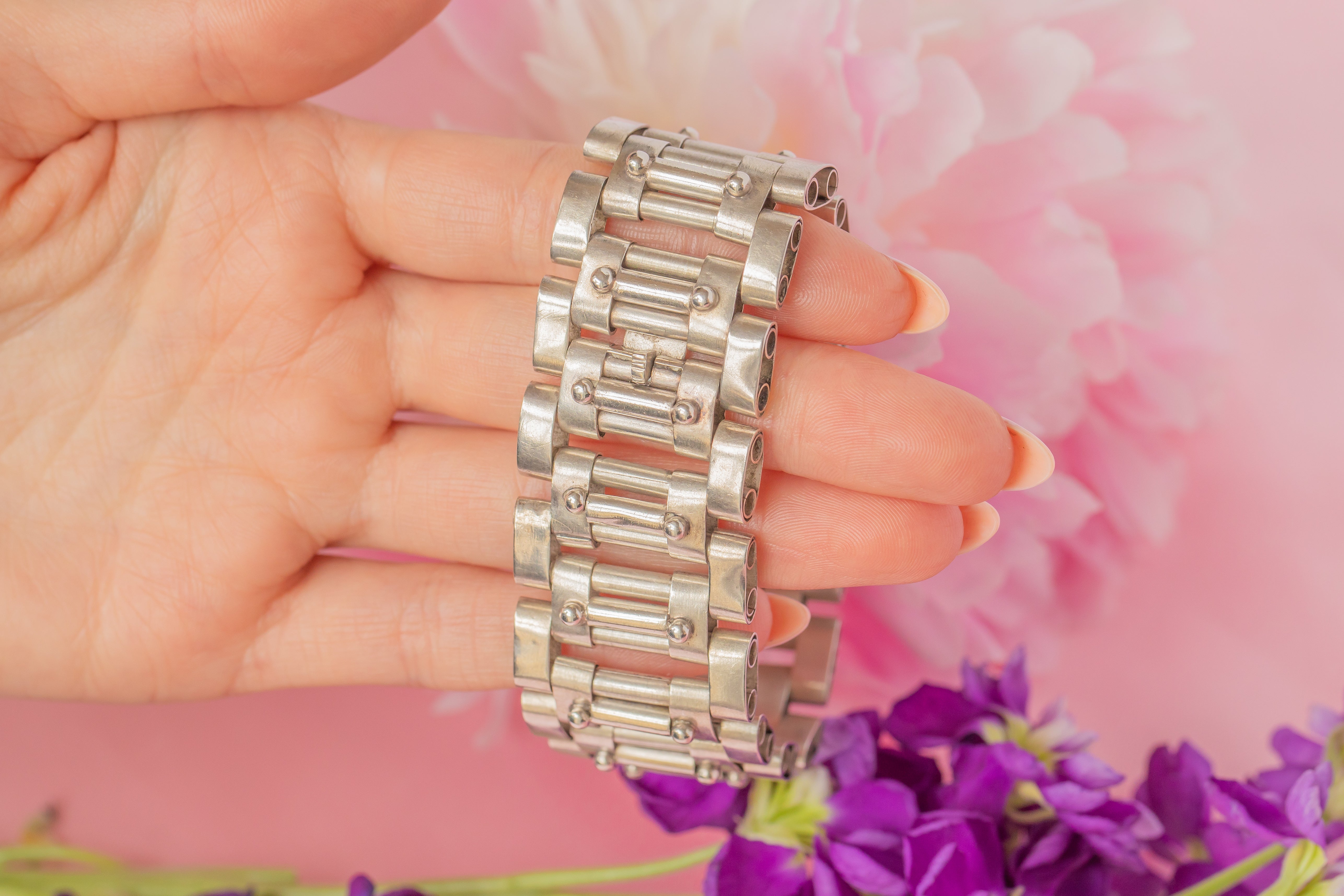 幅広ヴィクトリアンシルバーブックチェーンブレスレット、49g