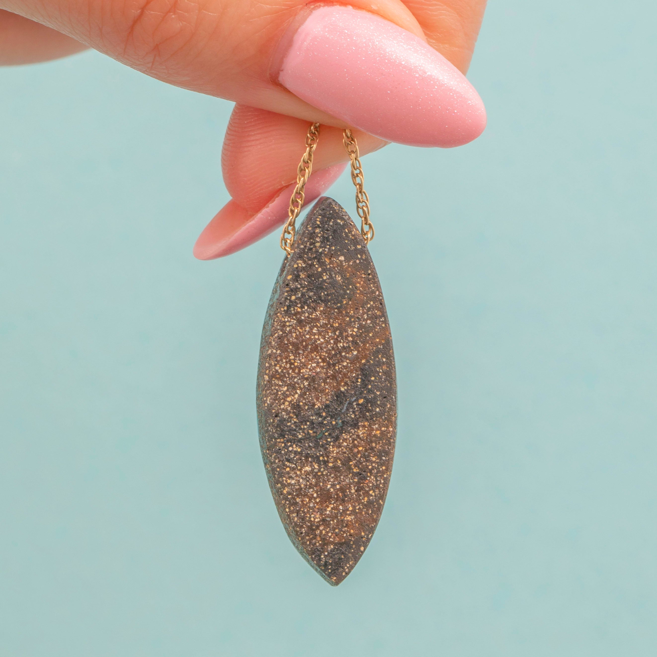 EXCELLENT: This Wood Opal navette pendant is in excellent condition. The Wood Opal has been wonderfully preserved, with no chips or scuffs visible. The 9ct Gold is buttery and the chain feels robust, with a fully functioning bolt ring allowing you to wear this vintage Wood Opal pendant with confidence!